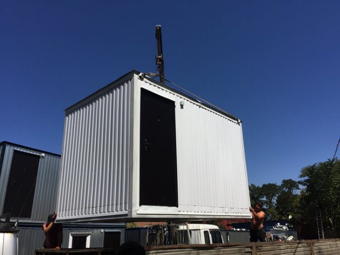 погрузка бытовки 6 м краном-манипулятором